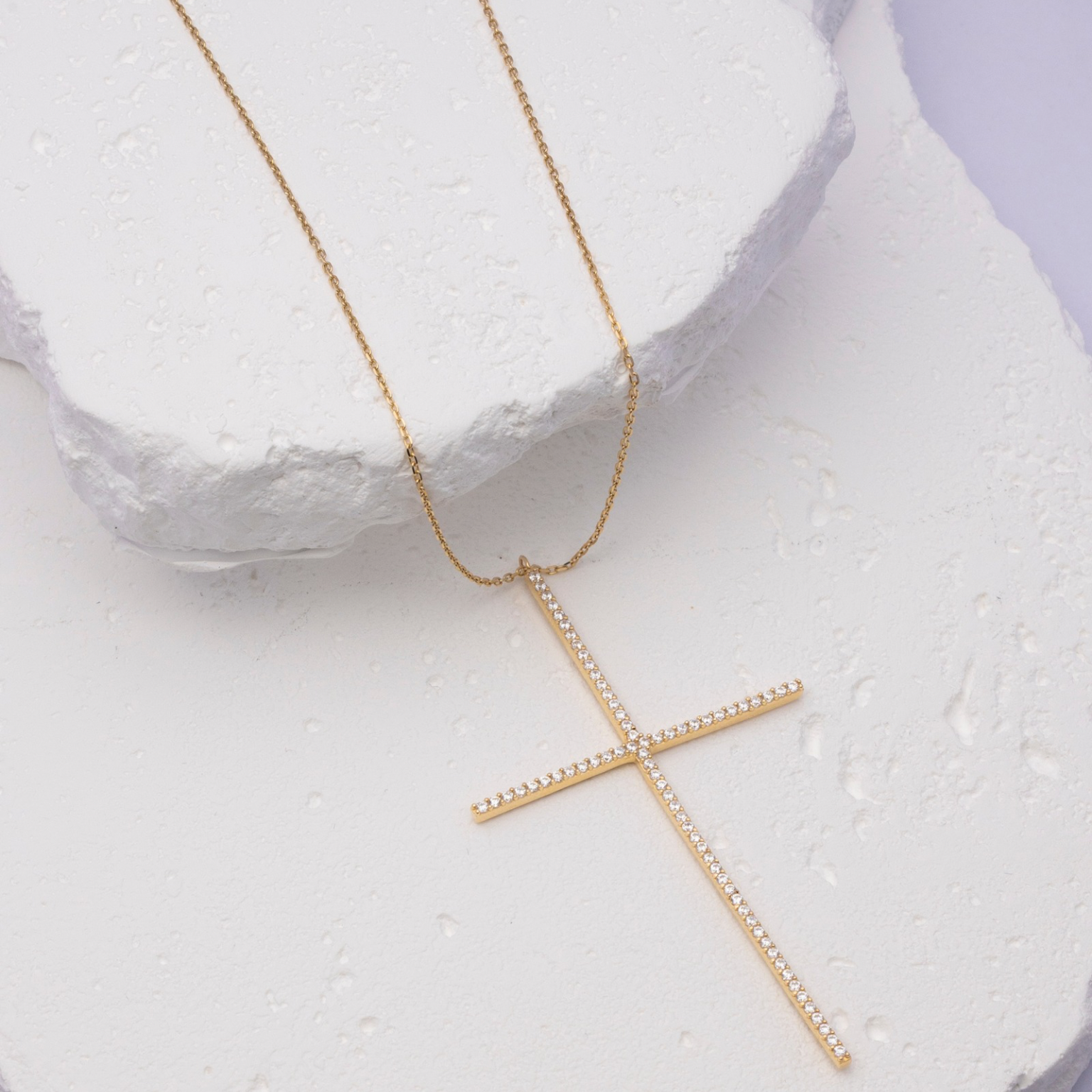 14k Crystal Cross Necklace - Statement of Faith