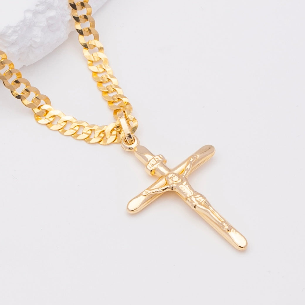 14k/10k Cuban Link Semi-Solid Necklace with Cross