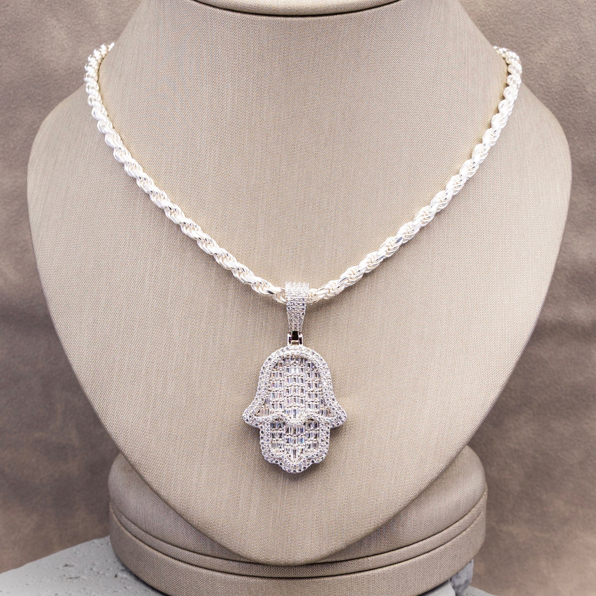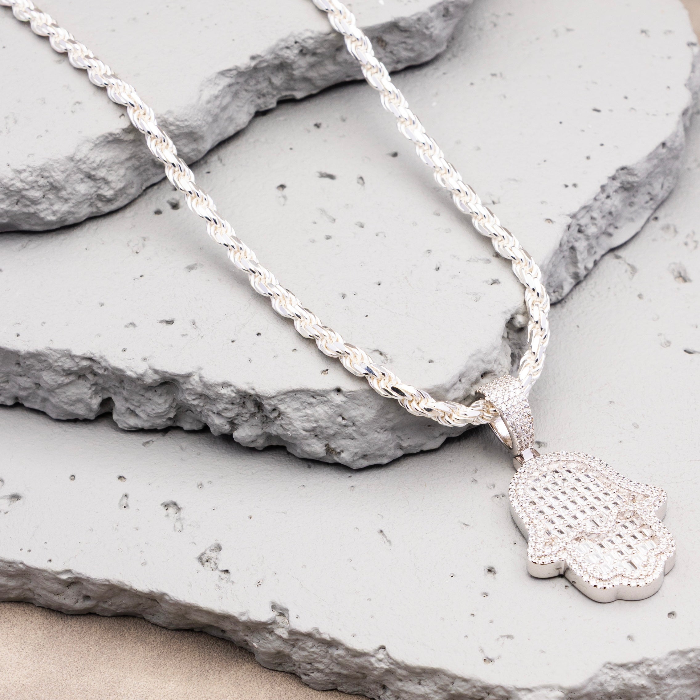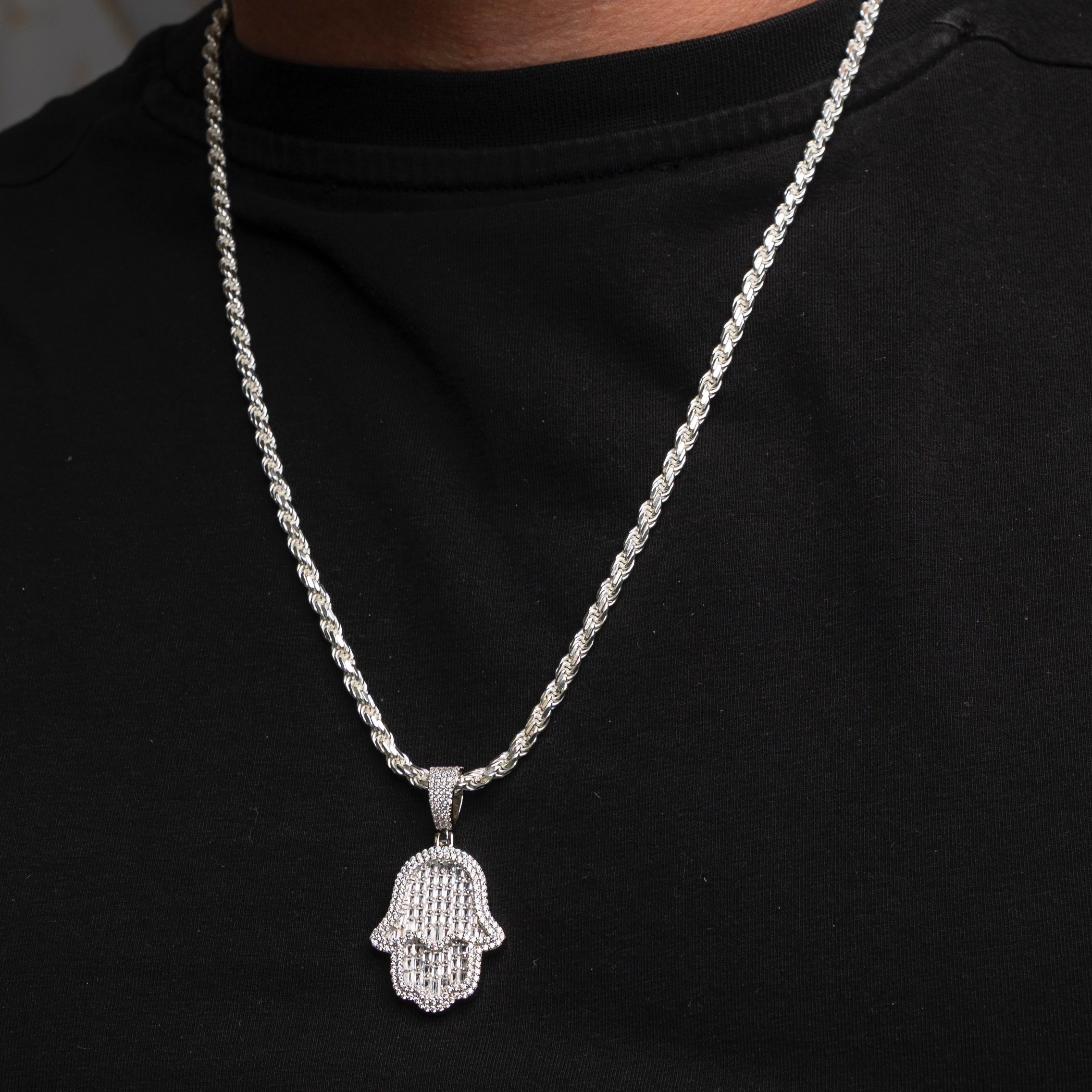 Silver Rope Chain with Pendant - Hamsa Hand