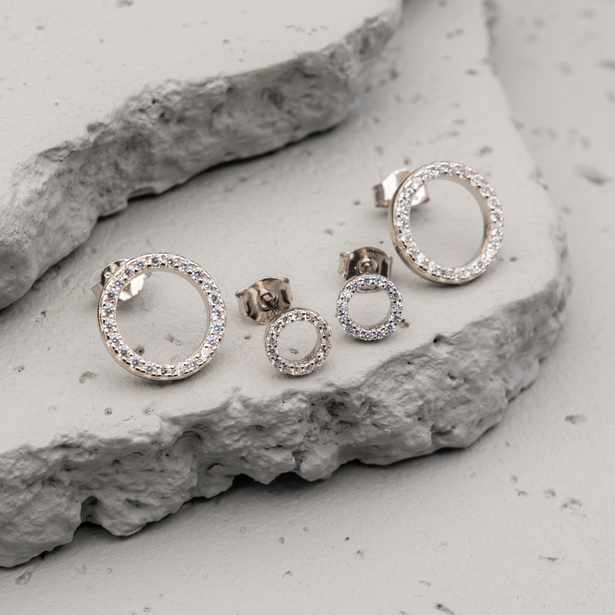 Silver Halo Earrings - Luna Circle