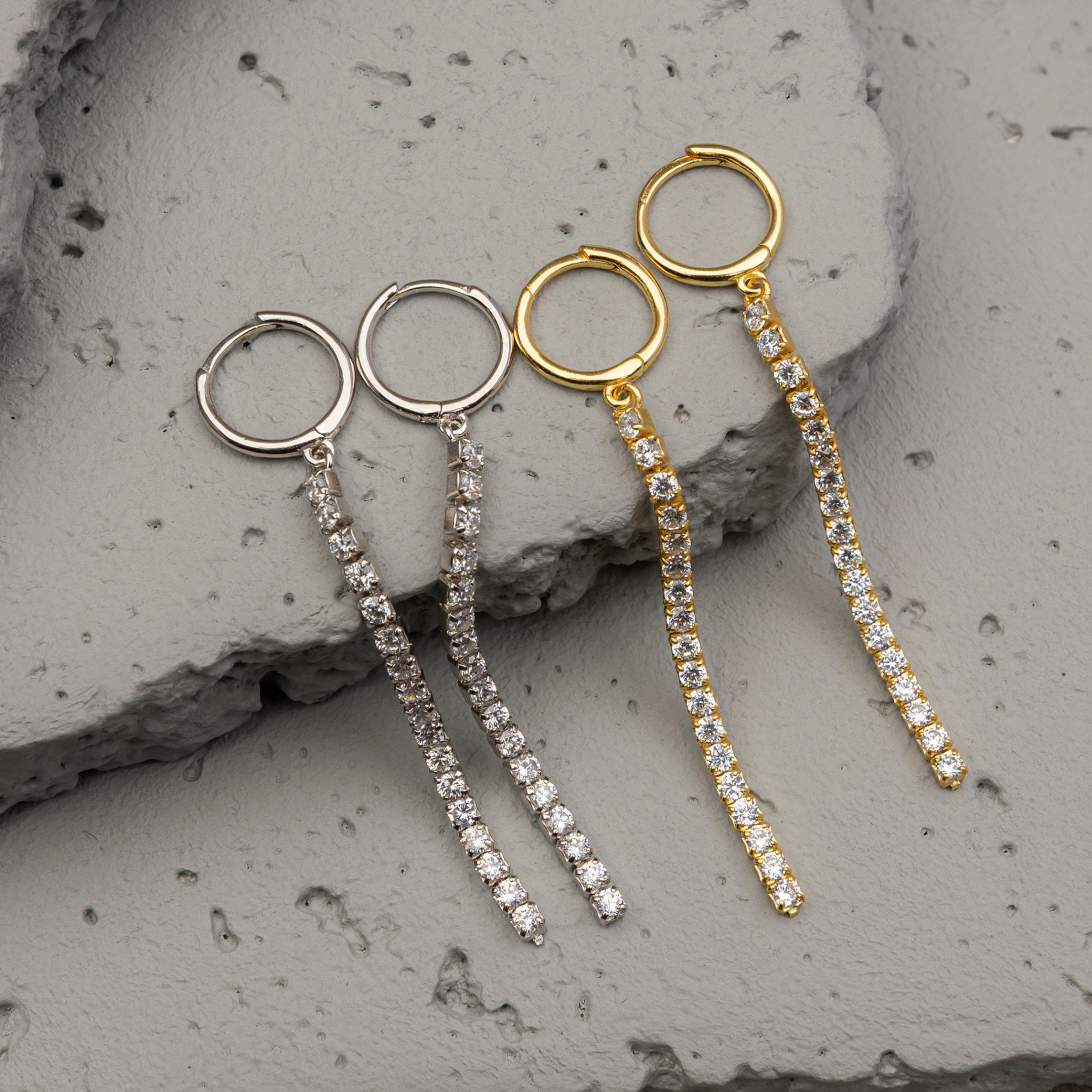 Silver Tennis Drop Earrings - Stellar Line
